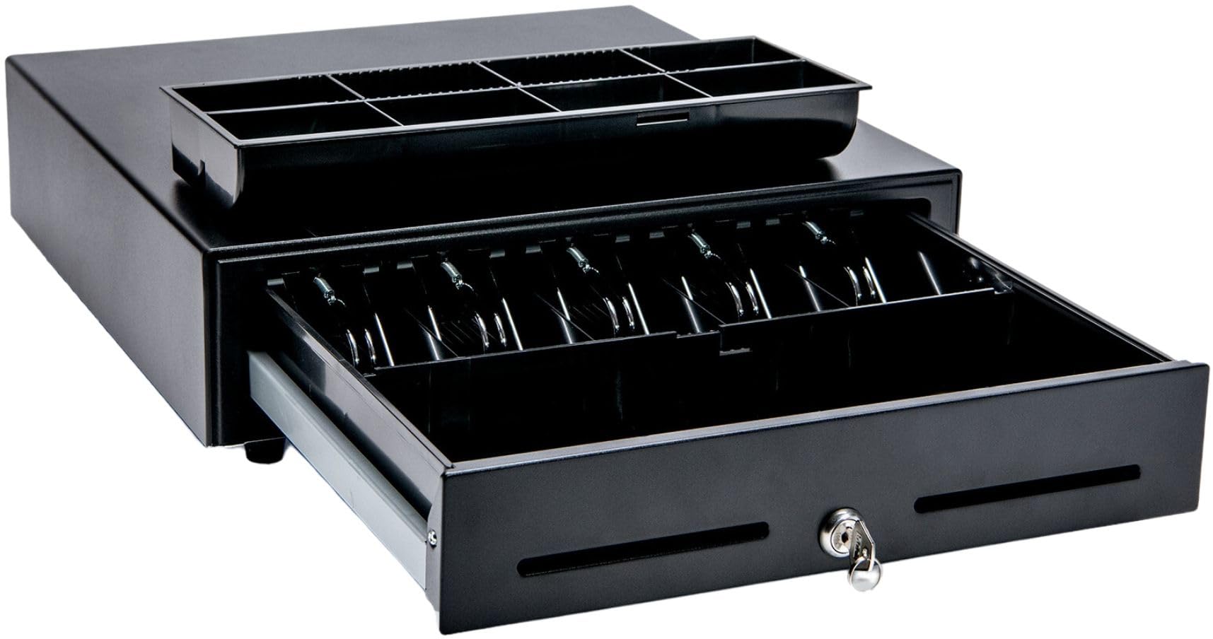 - A full-sized cash drawer for robust storage and high volume cash flow